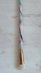 Das Atelier ist stolz darauf, in Kooperation mit einer deutschen Pinsel Manufaktur nur mit sehr hochwertigen Pinsel Rohlingen zu arbeiten. Die Pinsel haben größte Qualität und sind nur im Profi Bereich zu finden. Der Stiel besteht aus echtem Naturholz, die Haare aus veganem Haar.